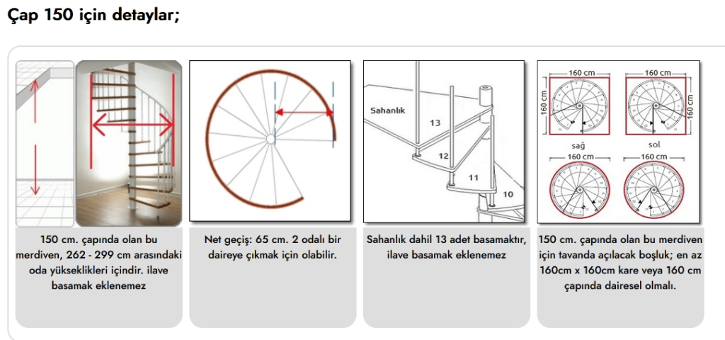 AYTÜRK DÖNER MERDİVEN MODELİ | Çap (Ø) 120 – 130 – 140 -150 -160
